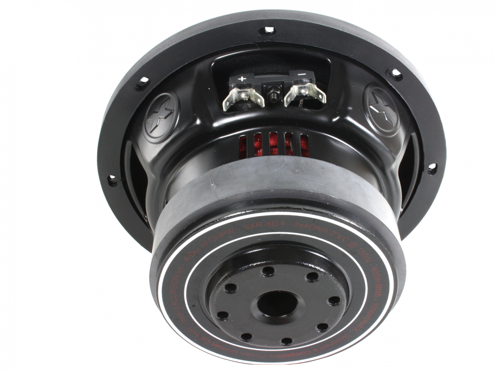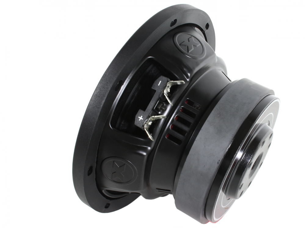 Ett fjäderlätt, men ändå tjockt naturligt pappersmembran med kärnor av kraftmassa övertygar med en torr och en voluminös, imponerande lågbasprestanda som inget öga kan hålla torrt. Våra överdimensionerade gummerade skumomslutningar, igensydda i rött, tillåter obegränsade rörelser i vår helt omgjorda EXCURSION-plåtkorg, förstärkt med vår X-prägling och överdimensionerad. Flerstegskylning sker i fyra former genom cirkulationen av korgens sidoventilationsöppningar och spolformarens övre ventilationsöppningar, ner till talspolegapet och ventilationsöppningarna och centralt genom bottenplattans kärnhål. Vår 4-lagers 28 mm höga OFC-kopparspiral är lindad på en solid 2" aluminiumhållare och kan hittas i våra större linjära centreringar. Med sin blodröda färg och sömmarna i samma färg på omramningen sätter de också nytt utseende accenter och kontraster.