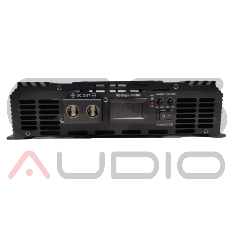 Den nya Gs Audio-strömförsörjningen är utformad och skapad speciellt för att stödja de stora systemen på den senaste generationens bilar. Spänningsregleringen kan utföras från 14 till 17 volt, detta gör att du kan använda denna strömförsörjning både för laddning och för att driva ljudsystem, vidare gör denna funktion den lämplig för både bly, AGM, LIFEpo4, LTO batterier. Den kan också användas som en bänkströmförsörjning. Idealisk för alla inomhusevenemang för att undvika att hålla motorn igång och förorena miljön.
