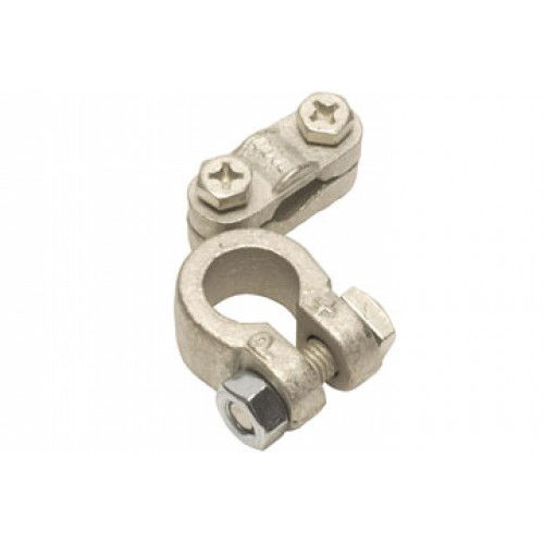 Kraftig Raco polsko i vinklat utförande för positiv batteripol, anpassad för kabelarea 35 till 70 mm². Den vinklade konstruktionen ger bättre kabeldragning i trånga utrymmen och minskar belastningen på kabeln vid installationer med höga strömmar.