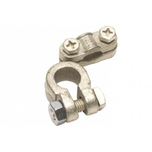 Kraftig Raco polsko i vinklat utförande för negativ batteripol, anpassad för kabelarea 35 till 70 mm². Den vinklade konstruktionen underlättar kabeldragning i trånga utrymmen och minskar mekanisk belastning på kabeln vid installationer med höga strömmar.